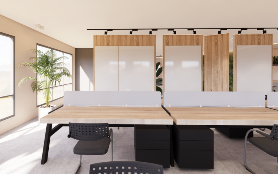 Every detail, from the palette to the lighting, was chosen to create a space that encourages clarity, calm, and creative momentum. Natural textures balance modern lines, while open areas invite collaboration without sacrificing quiet focus. Thoughtful storage keeps the space grounded in function, while soft layers and curated decor bring warmth and identity.